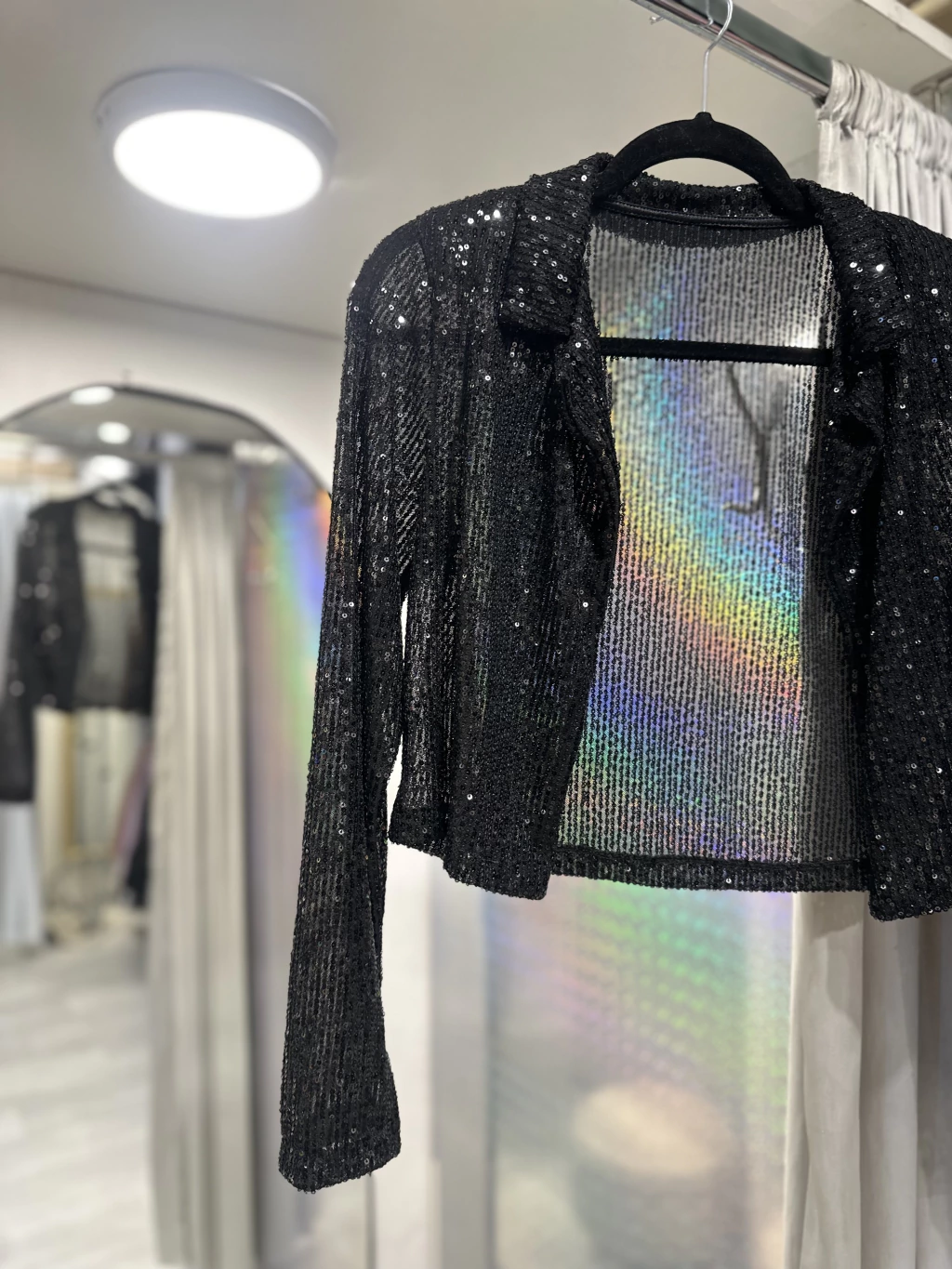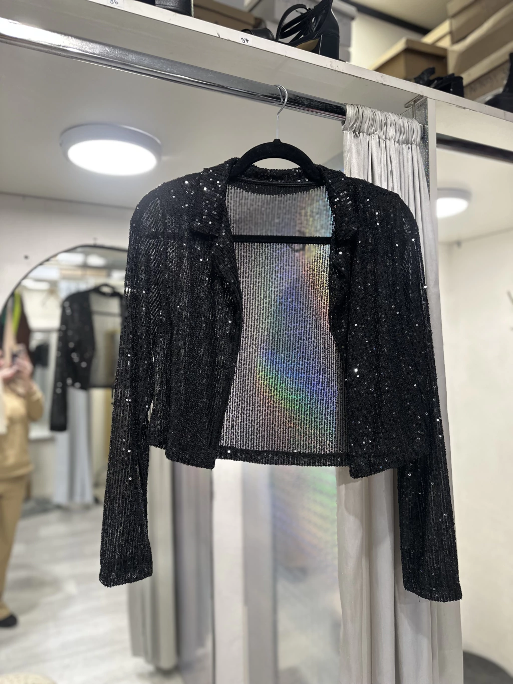 Blazer de Pailette con Hombreras – Una prenda que combina estilo y sofisticación. Confeccionado en pailette brillante, aporta un look glamouroso y moderno, mientras que las hombreras realzan la silueta y le dan estructura. Ideal para eventos, salidas nocturnas o para elevar cualquier outfit con un toque de elegancia y tendencia.
