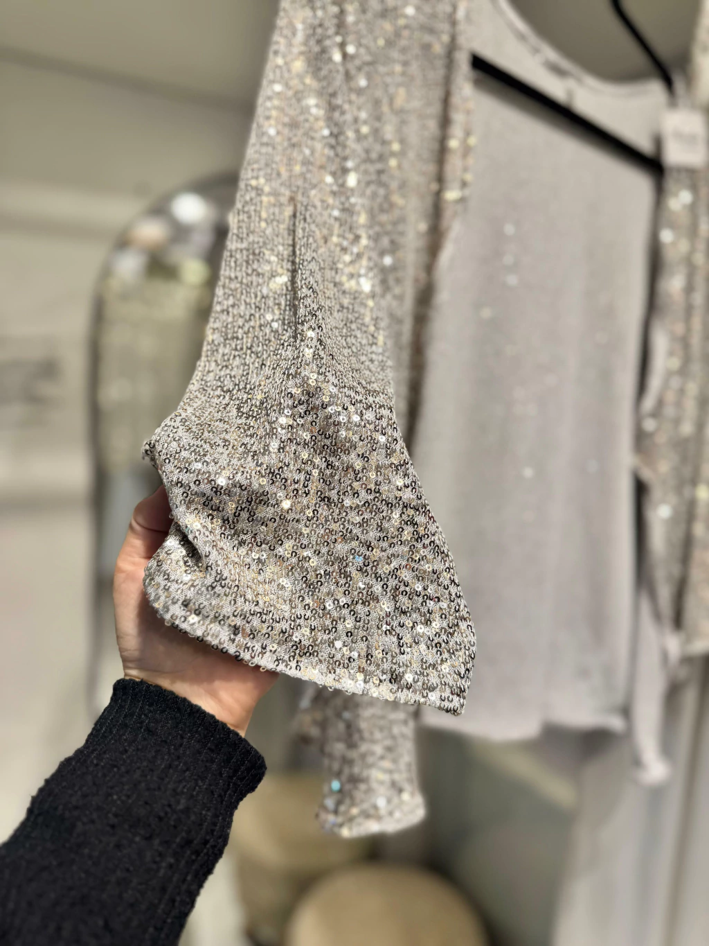 Un blazer de lentejuelas pailette en negro o plateado es una prenda de alto impacto y sofisticación. Su corte estructurado y elegante se combina con el brillo llamativo de las lentejuelas, que cubren toda la superficie de la prenda, creando un efecto deslumbrante. El negro ofrece un toque de misterio y versatilidad, mientras que el plateado aporta un aire más brillante y festivo. Este blazer es perfecto para ocasiones especiales, eventos de noche o para añadir un toque de glamour a un look más casual. Ideal para quienes buscan destacar con estilo sin perder la elegancia.