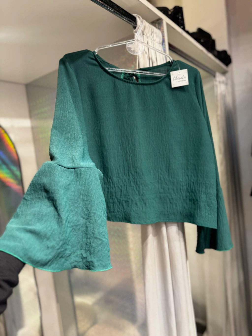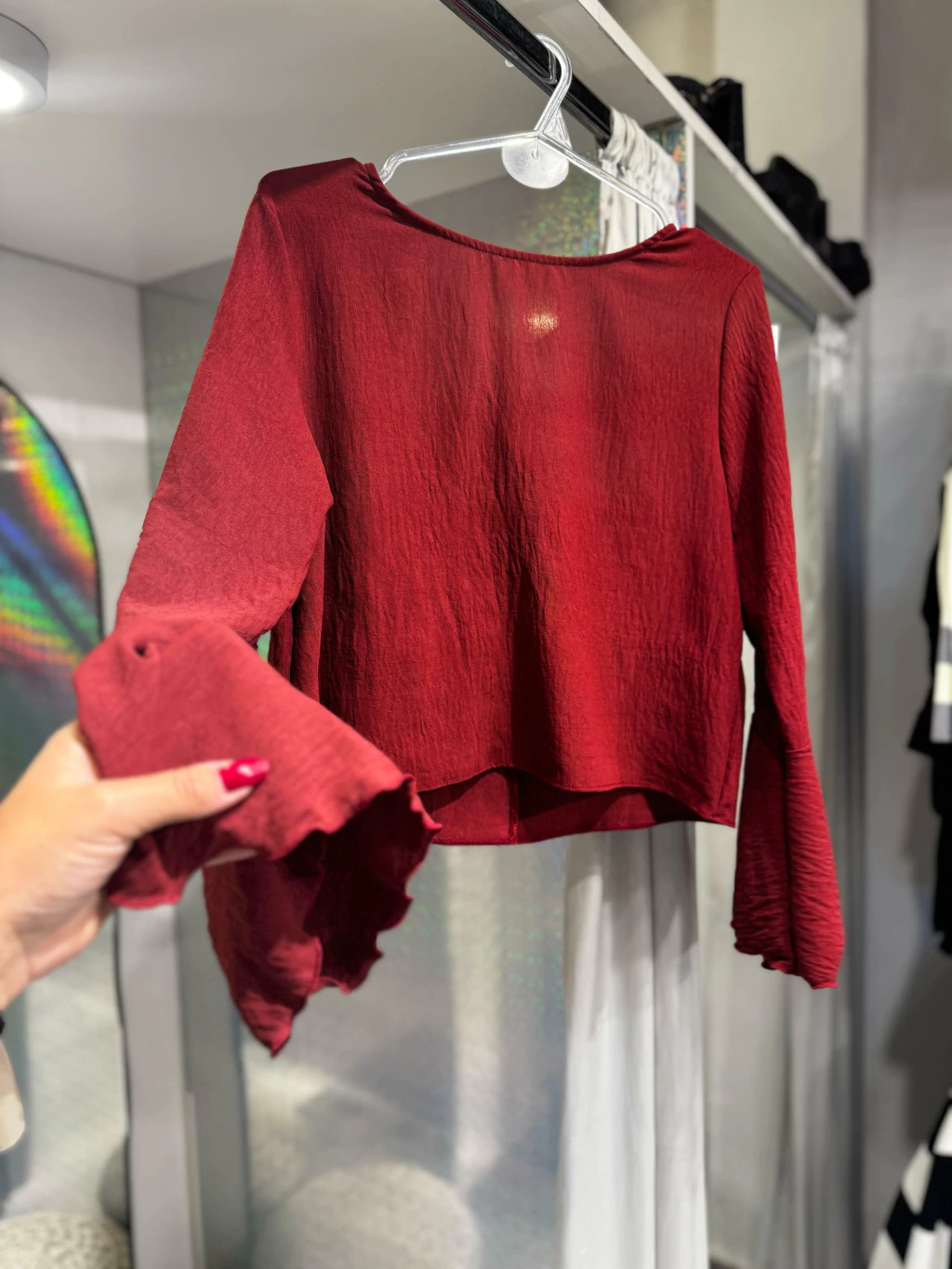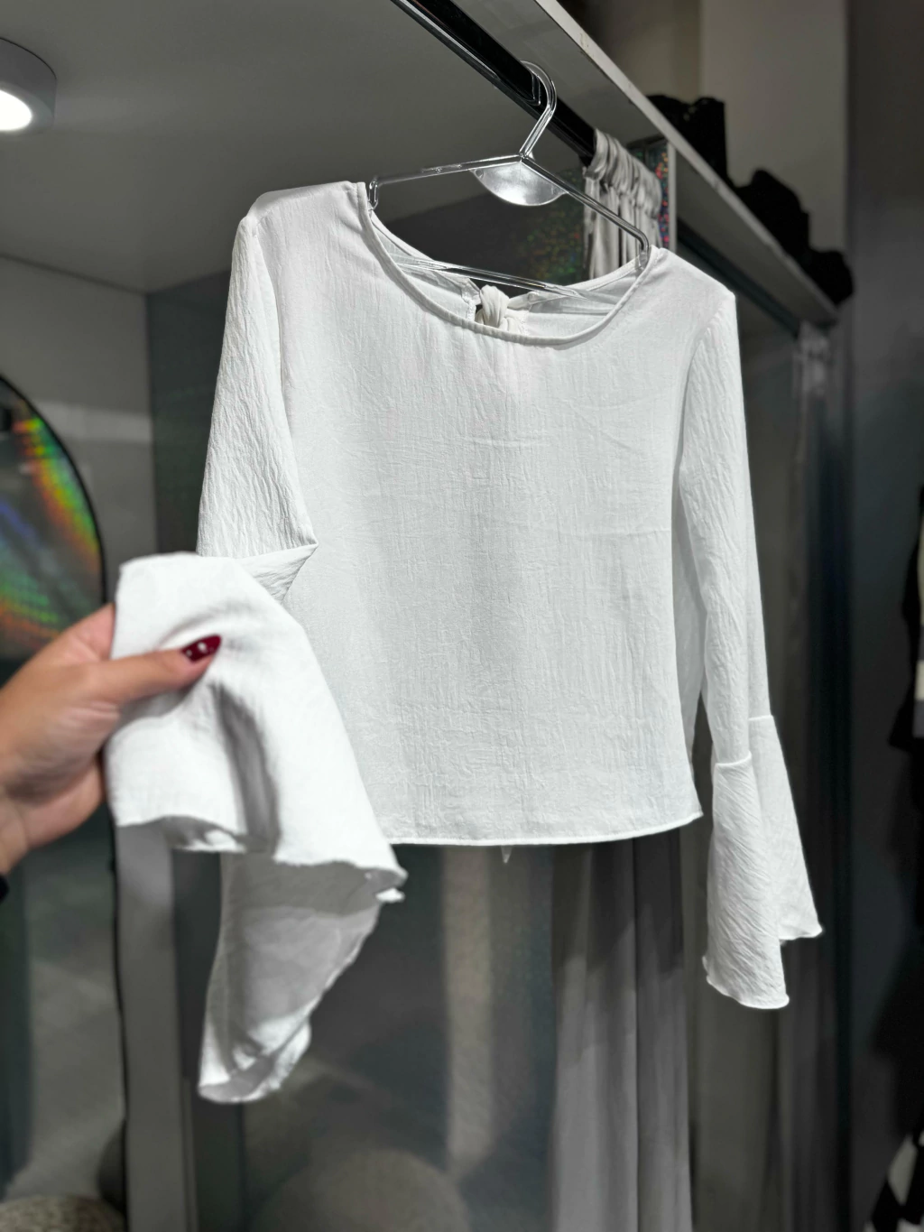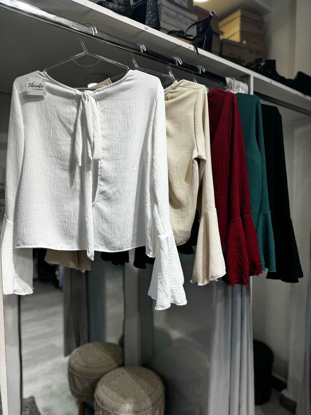 Blusa Crepe Celeste Descubrí la elegancia y frescura de nuestra blusa corta para atar atrás, confeccionada en crep Kenia con textura arrugada que aporta un toque único y sofisticado. Su manga larga termina en oxford, combinando estilo y comodidad en un diseño de talle único que se adapta perfectamente a vos. Ideal para crear looks modernos y versátiles que realzan tu personalidad. ¡Sumá esta prenda imprescindible a tu guardarropa y destacate en cualquier ocasión!