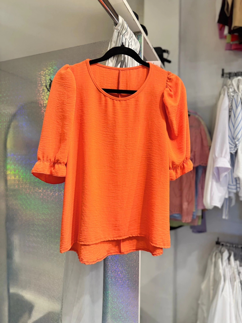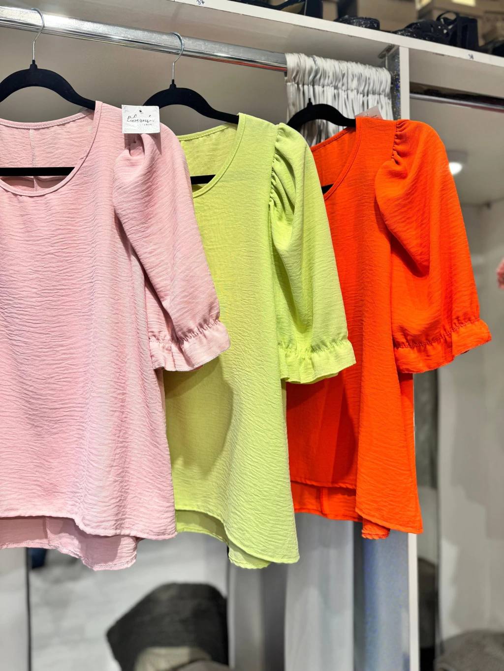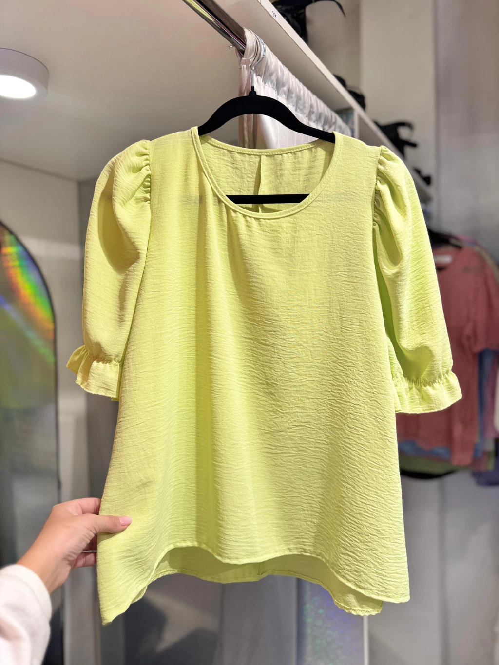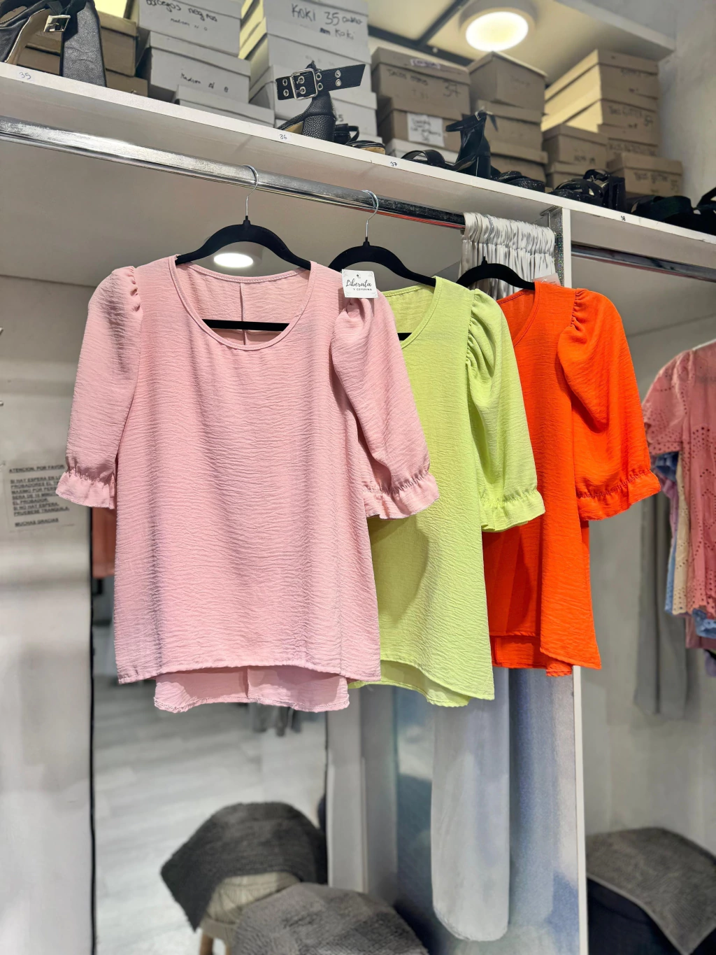 Esta blusa de crepe es el equilibrio perfecto entre elegancia y comodidad. Confeccionada en un tejido liviano y de caída suave, presenta un cuello redondo clásico que enmarca el rostro con sencillez y estilo. Las mangas fruncidas con elástico añaden un toque femenino y moderno, creando un sutil volumen que realza el diseño sin perder confort. Ideal para looks de oficina o salidas informales, se adapta fácilmente a cualquier combinación, desde pantalones sastreros hasta jeans o faldas fluidas.