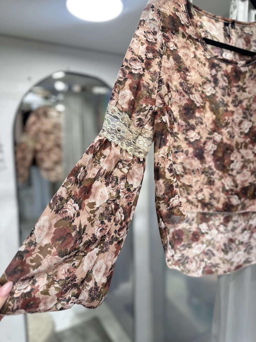 Descubre la belleza y la elegancia de nuestras blusas de microtul con estampa de flores. Con manga acampanada y un encantador detalle de encaje, esta prenda es ideal para aportar un toque femenino a cualquier conjunto.
