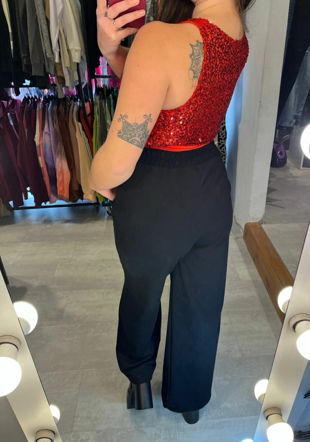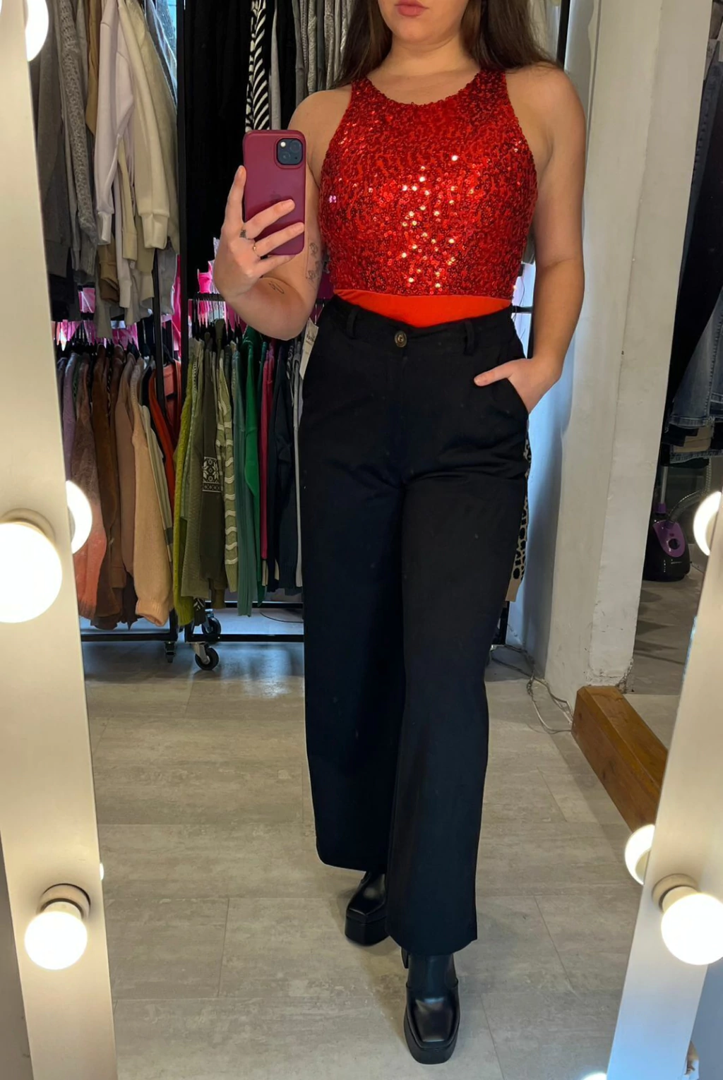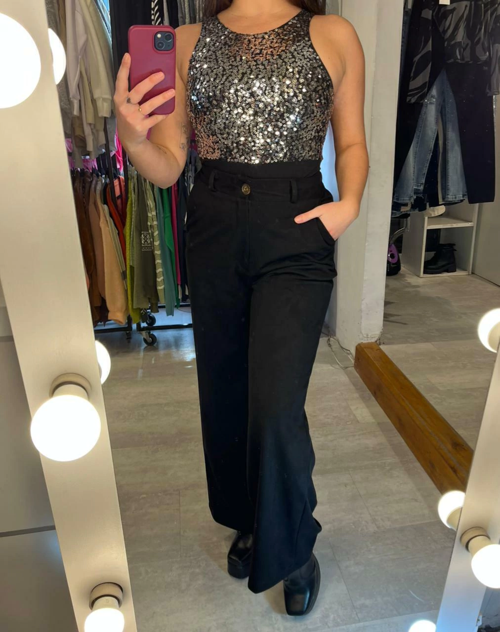 Este body de lentejuelas es la prenda ideal para añadir un toque de brillo y elegancia a tu look. Con un diseño ajustado y sofisticado, tiene un cuello redondo que realza la figura y ofrece comodidad. Su tela con lentejuelas brillantes crea un efecto llamativo, perfecto para ocasiones especiales o una salida nocturna. El ajuste ceñido al cuerpo resalta la silueta, mientras que el material de alta calidad garantiza durabilidad y comodidad durante todo el día o la noche. La musculosa es ideal para combinar con pantalones de talle alto, faldas o jeans, creando un outfit moderno y audaz.