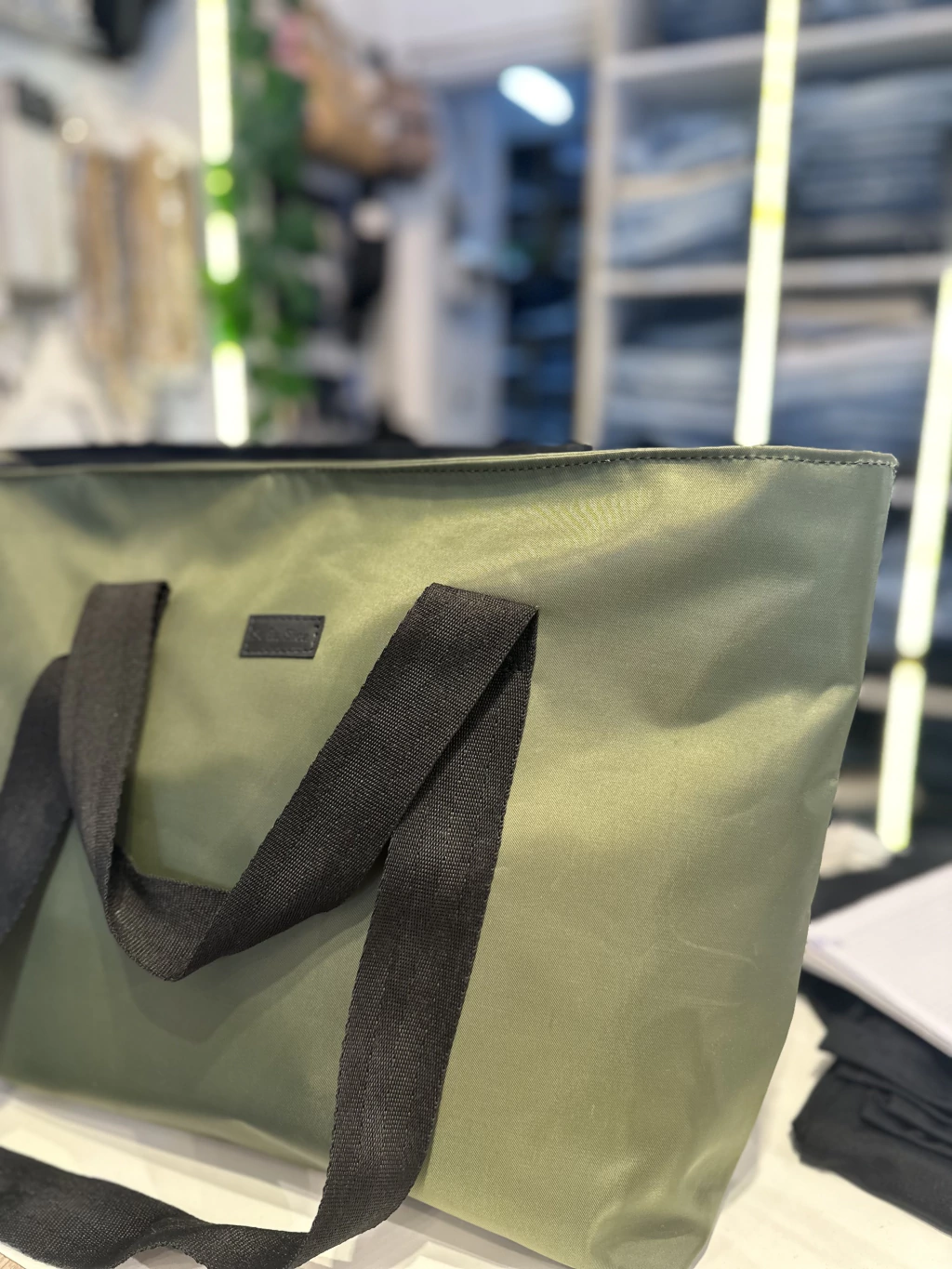 Este bolso amplio es la opción perfecta para quienes necesitan un accesorio funcional y resistente para el día a día. Hecho con tela impermeable, es ideal para proteger tus pertenencias de la lluvia o la humedad, manteniendo todo en su lugar y seco. Con un diseño espacioso, es perfecto para llevar libros, cuadernos, laptops, o cualquier otra cosa que necesites para la facultad o para un día lleno de actividades.
