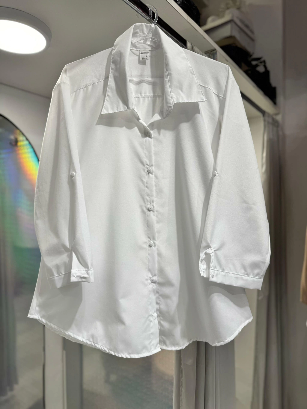 Descubre la Camisa Blanca de Algodón Rígido, una prenda esencial que combina estilo y confort. Perfecta para cualquier ocasión, su diseño de manga 3/4 le brinda un toque moderno, mientras que su confección en algodón rígido asegura durabilidad y una caída impecable.