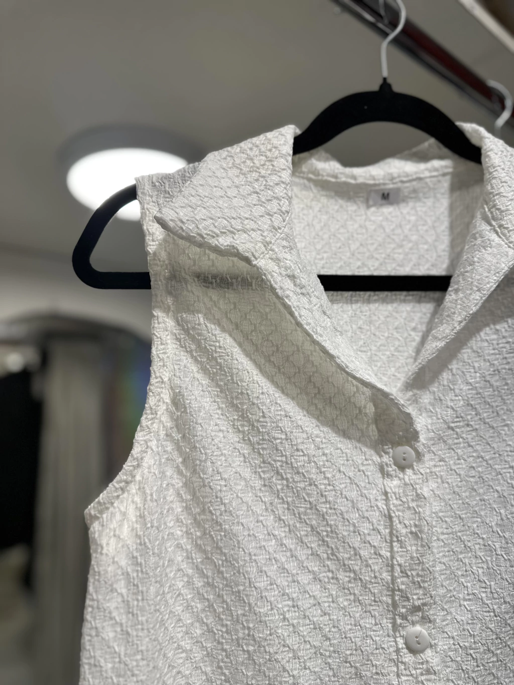 Chaleco tipo camisa – Confeccionado en material elastizado con textura, aporta comodidad y un calce perfecto. De diseño tipo camisa, es una prenda moderna y versátil que podés usar tanto sola como sobre otras prendas para completar tu look.