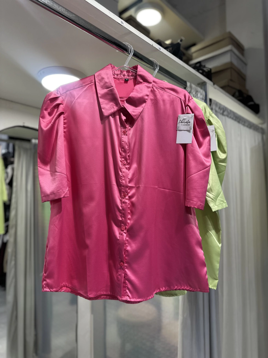 Camisa confeccionada en satén suave con brillo sutil. De largo clásico y calce cómodo, destaca por sus mangas cortas estilo princesa que aportan un toque femenino y elegante. Ideal para elevar un look de oficina o para ocasiones especiales, combinando sofisticación y frescura.