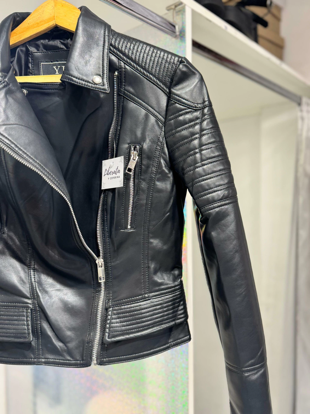Campera Eco Cuero hombros textura YD