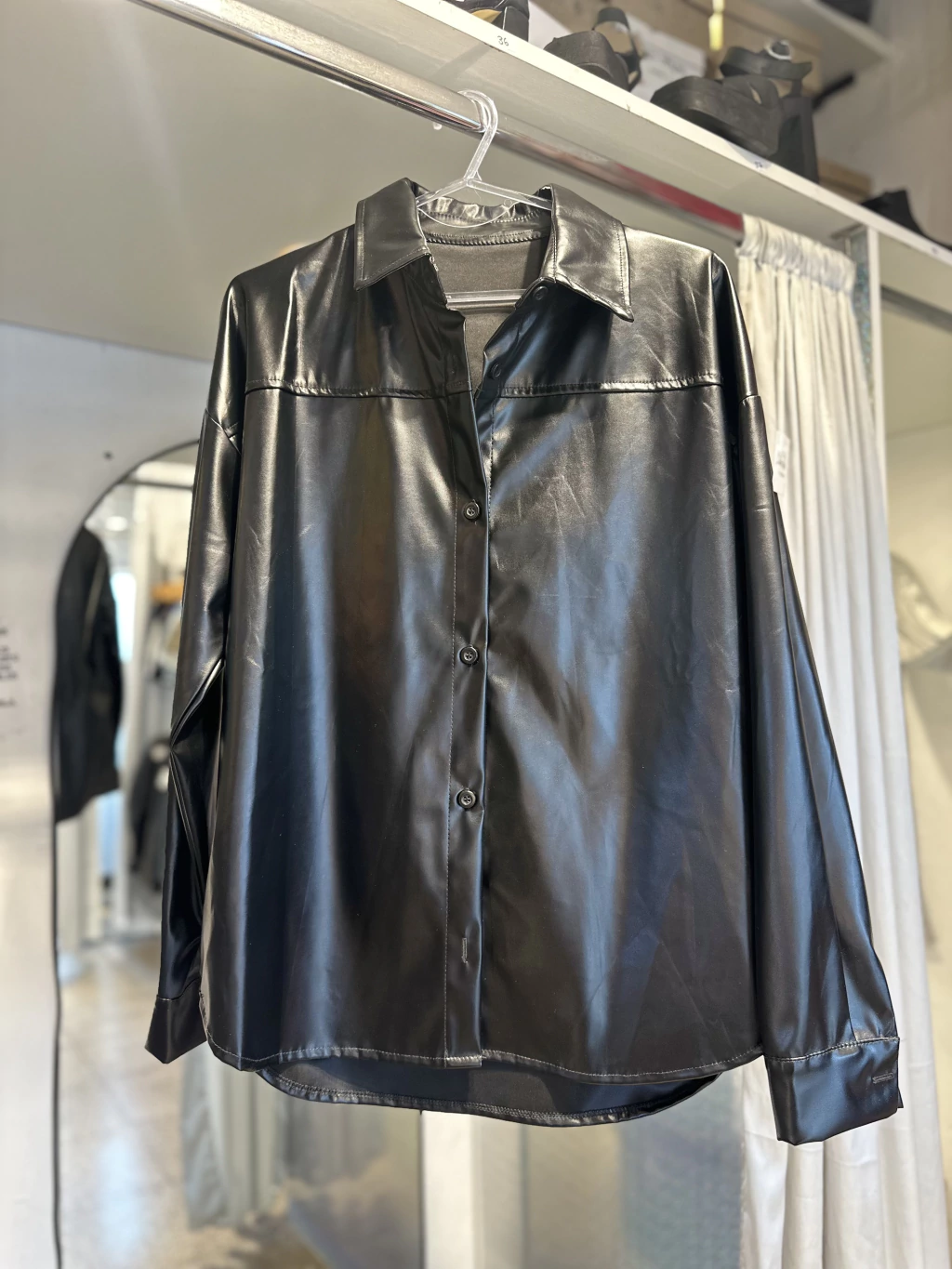 Chaqueta engomada, ideal para un look moderno y atrevido. Confeccionada en material engomado de alta calidad, esta prenda aporta un toque de estilo único y una apariencia elegante con un acabado brillante.