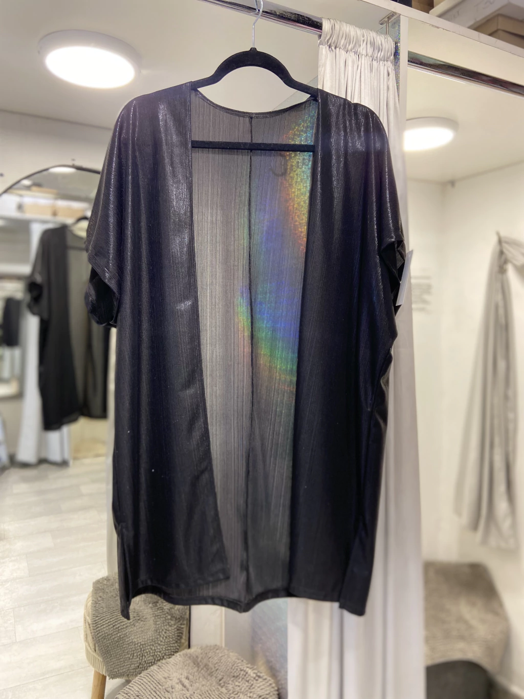 Este kimono es la opción perfecta para darle un toque de distinción a tus conjuntos, desde eventos especiales hasta salidas casuales. Su brillo único lo convierte en la prenda ideal para quienes quieren marcar la diferencia sin sacrificar comodidad.