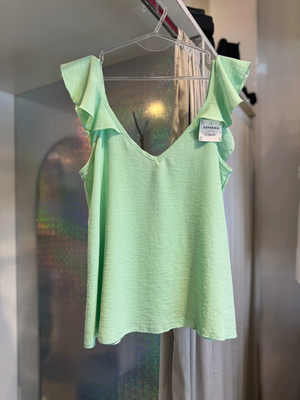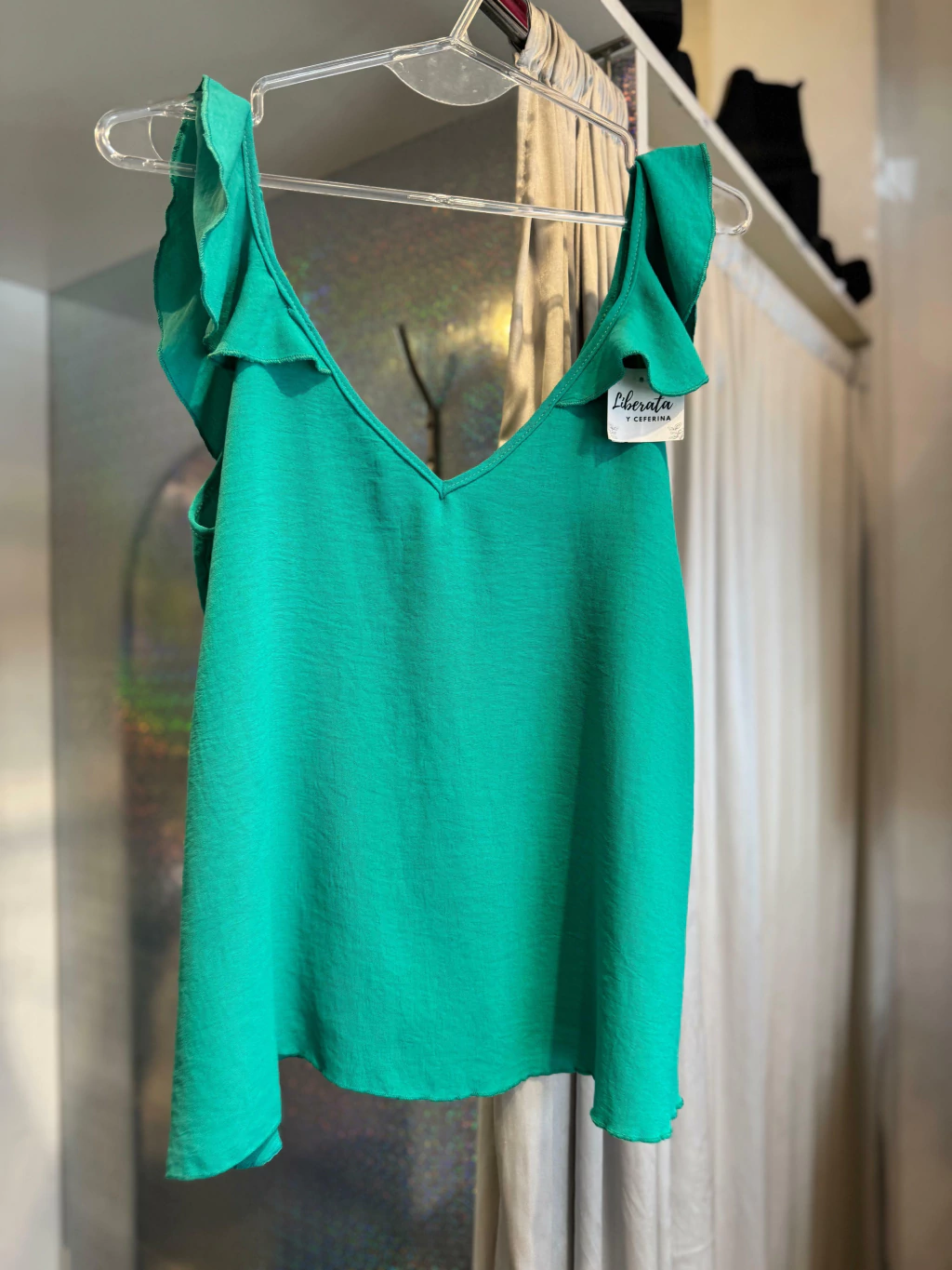 ¡Añade un toque de frescura y elegancia a tu look con nuestra musculosa de crepé! Con volados delicados en los breteles y un escote en V favorecedor, es la prenda perfecta para sentirte cómoda y sofisticada en cualquier ocasión. Disponible desde el talle M al 3XL y en una variedad de colores vibrantes, es versátil y se adapta a tu estilo. ¡No te pierdas esta pieza imprescindible para tu placard!
