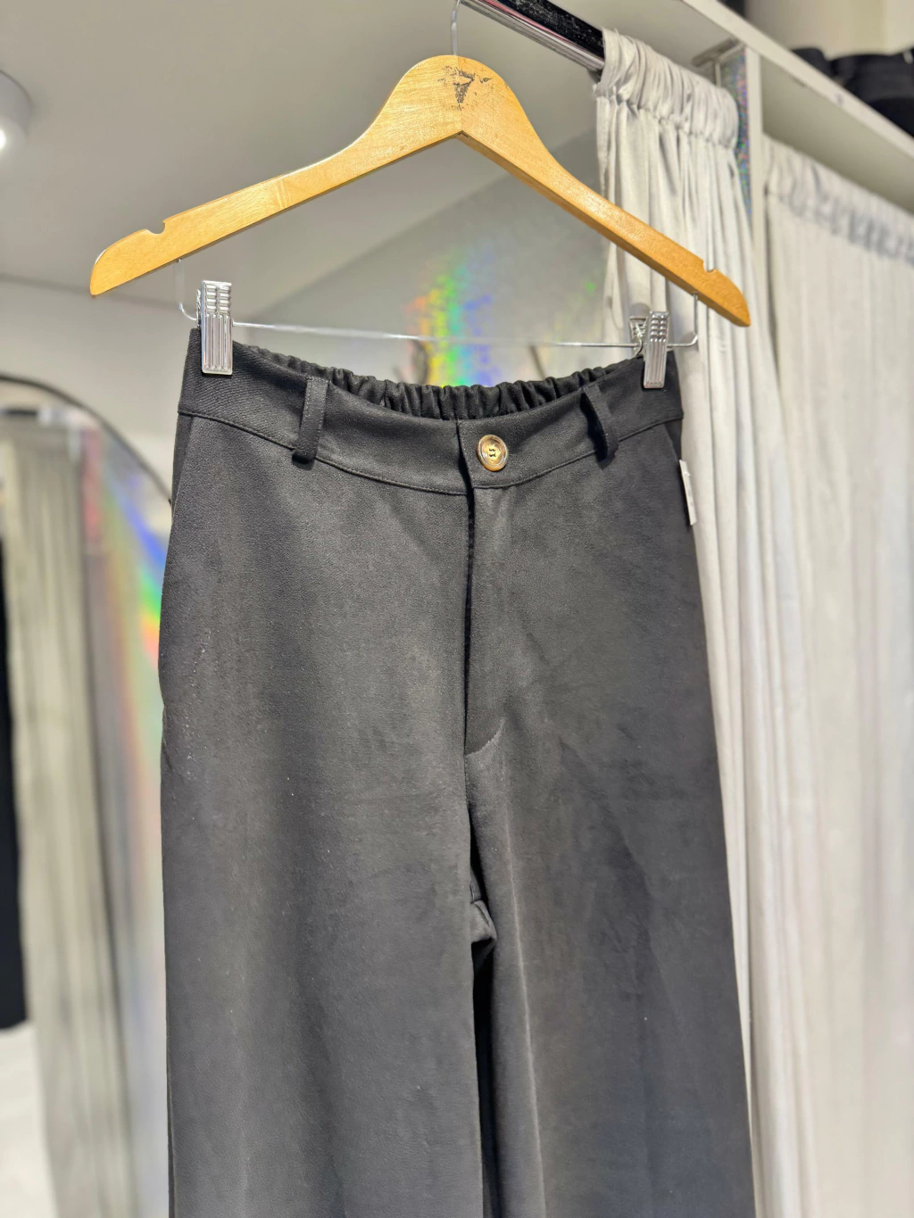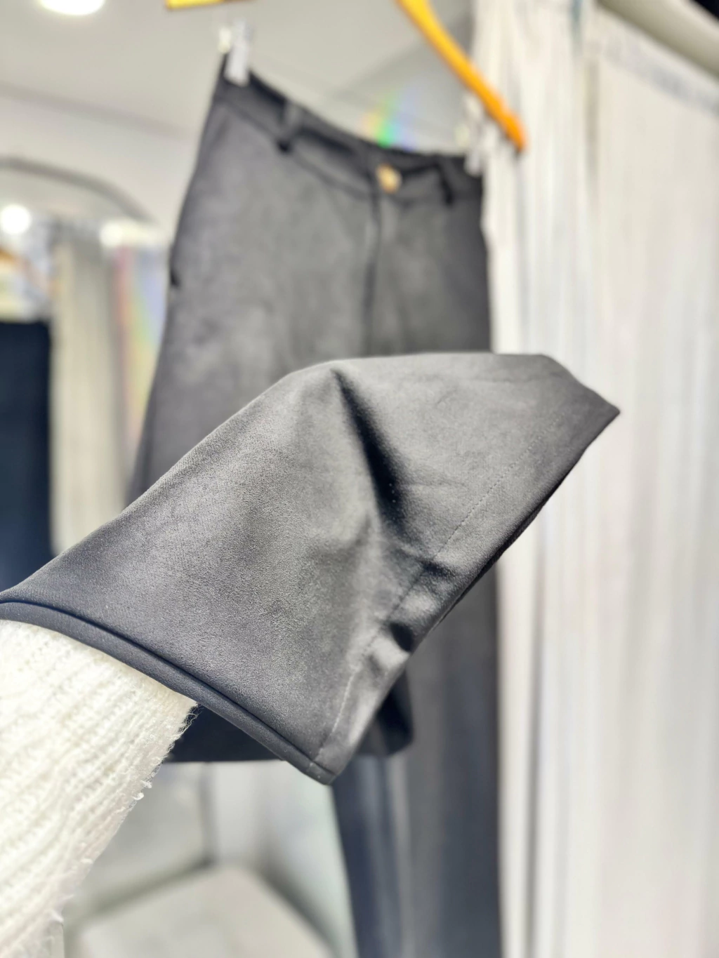 ¡Descubre el Pantalón Hermes Gamuzado Negro! Una prenda única que combina calidez y estilo. Este pantalón, con un diseño sastrero por dentro y gamuzado por fuera, te mantendrá abrigada sin sacrificar la elegancia.