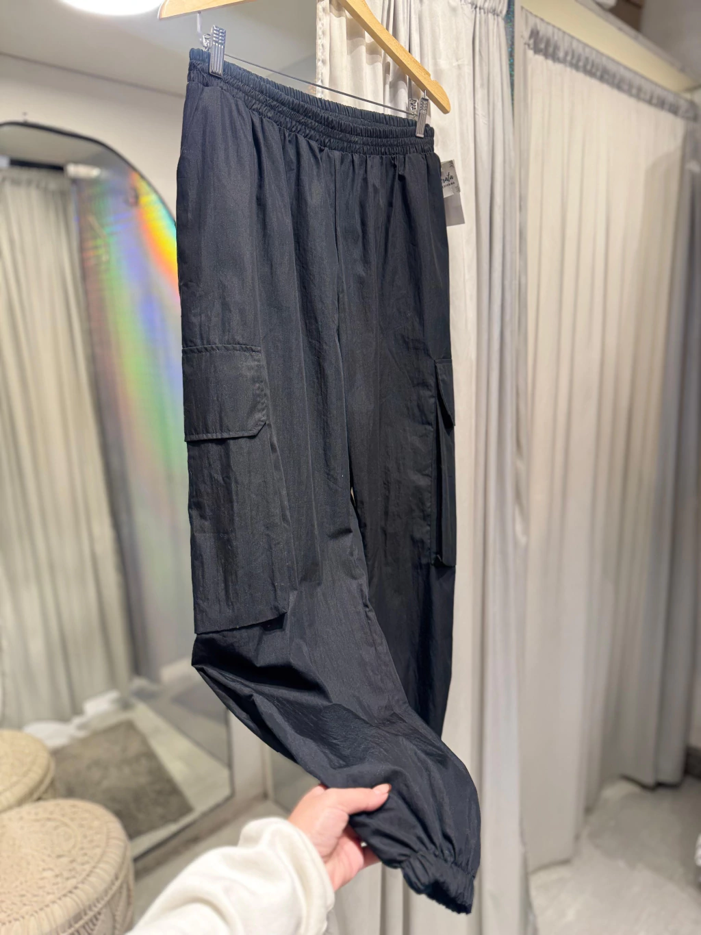Pantalón confeccionado en tela tipo rompeviento, ligera y resistente al viento. Presenta puños en los tobillos que aportan ajuste y estilo moderno. De calce cómodo y versátil, ideal para combinar con remeras, sweaters o tops, logrando looks urbanos, casuales y funcionales.
