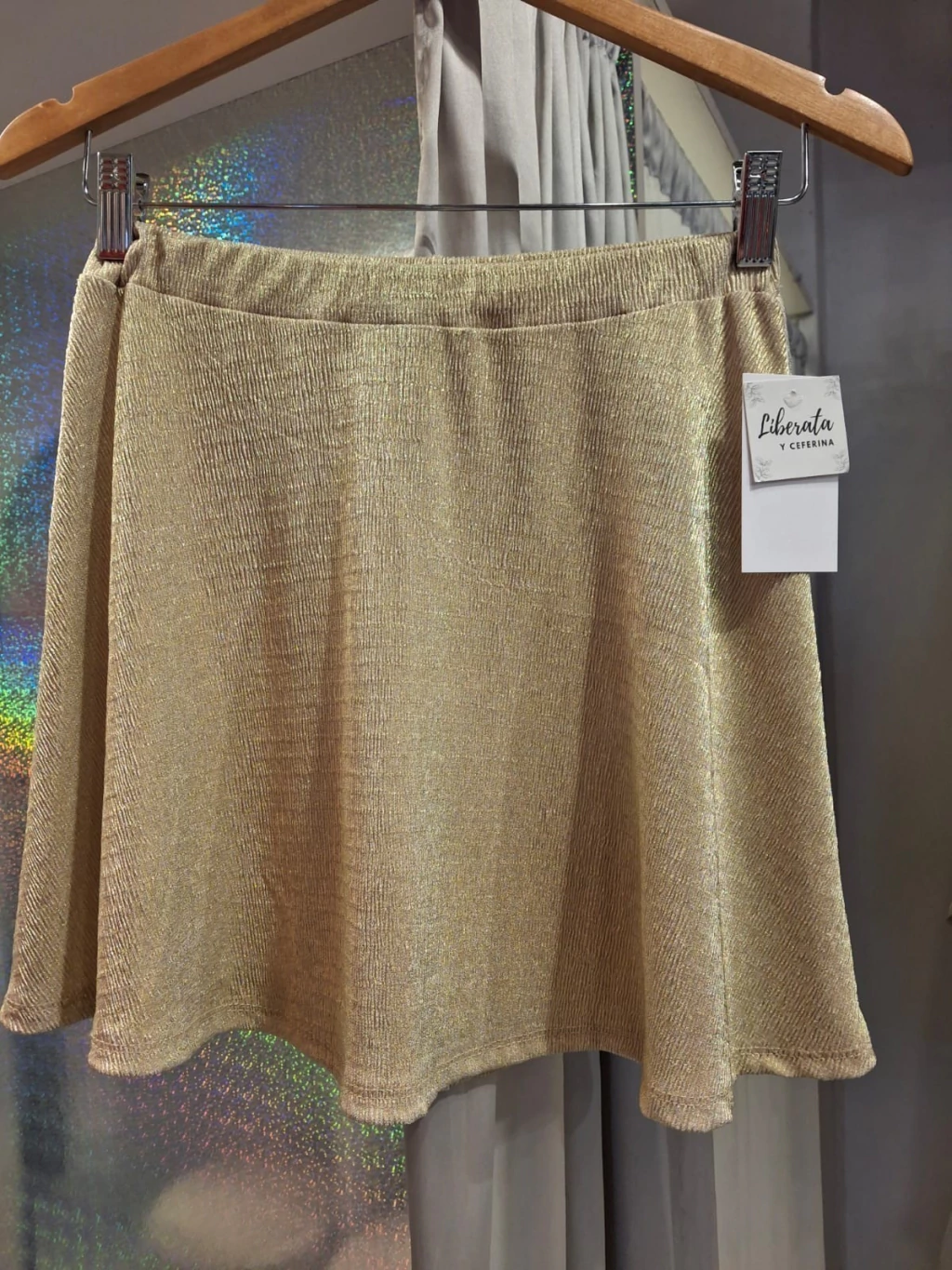Descubrí la elegancia y el brillo sutil de la Pollera Divina, una pollera acampanada de lurex en un sofisticado color champagne. Su diseño fluido y delicado realza cualquier look, ideal para eventos especiales y salidas únicas.