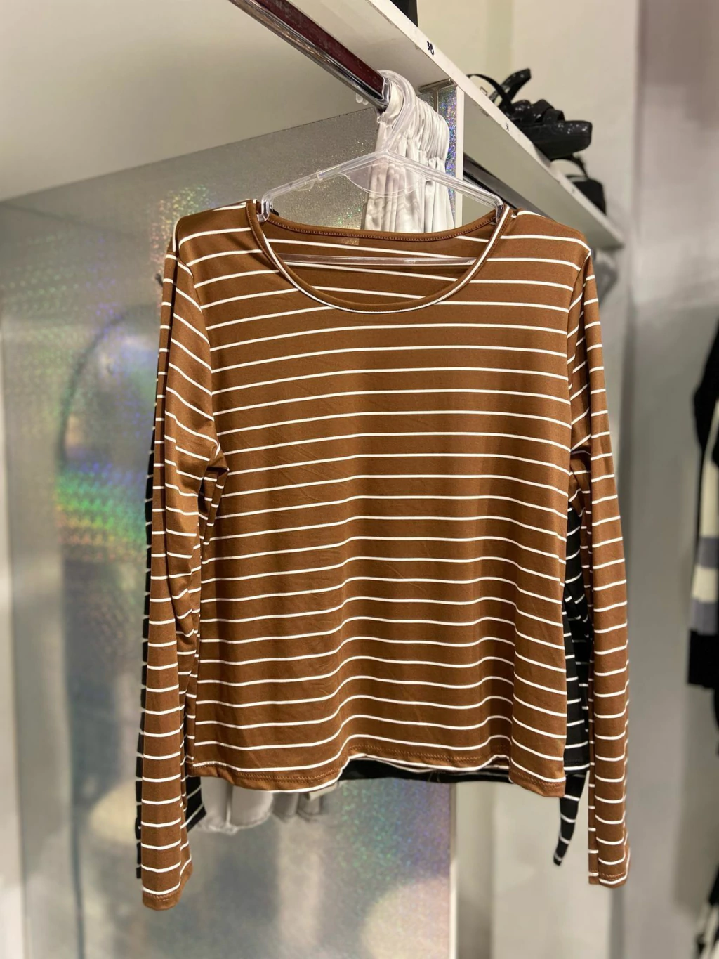 Remera Rayada Linda Descubre la elegancia y comodidad de la Remera Manga Larga Cuello Redondo en material modal gamuzado. Con una estampa en rayas que aporta un toque moderno, esta prenda es perfecta para cualquier ocasión, ya sea un día casual o una salida nocturna.