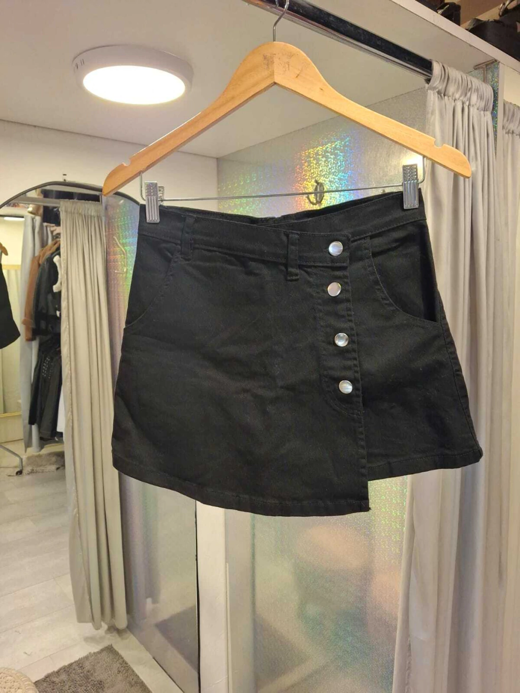 Skort de jean elastizada con cierre frontal y detalle de 4 botones. Combina la practicidad del short con el diseño canchero de la pollera, ofreciendo un calce cómodo, moderno y versátil para cualquier ocasión.