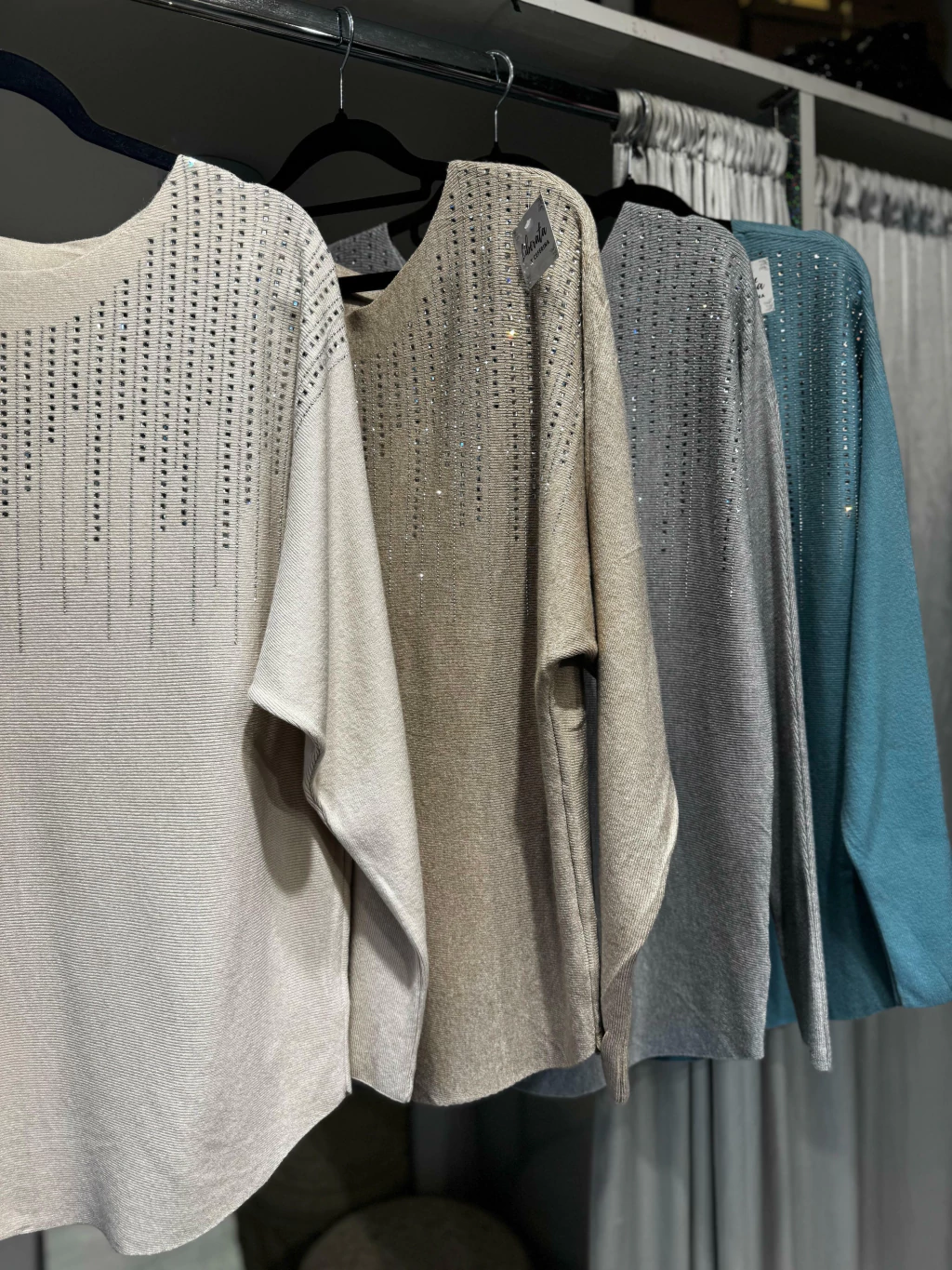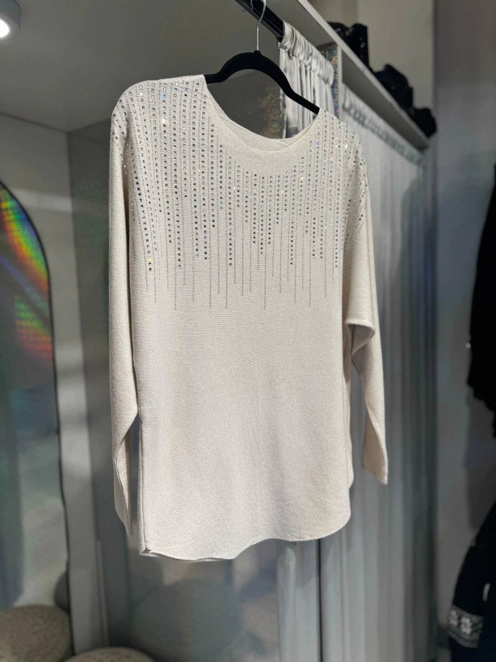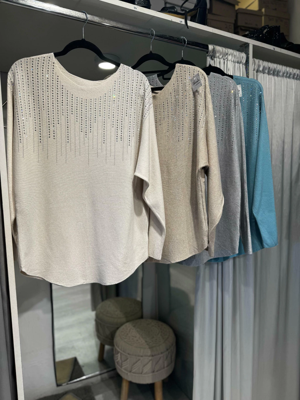 Descubrí el Sweater importado con espejitos y strass, una prenda única que combina elegancia y sofisticación. Confeccionado en bremer premium, ofrece una textura suave y cómoda, ideal para destacar en cualquier ocasión. Su delicado detalle de espejitos y strass aporta un brillo sutil que realza tu estilo con un toque exclusivo. No te pierdas la oportunidad de lucir esta joya en tu guardarropa.
