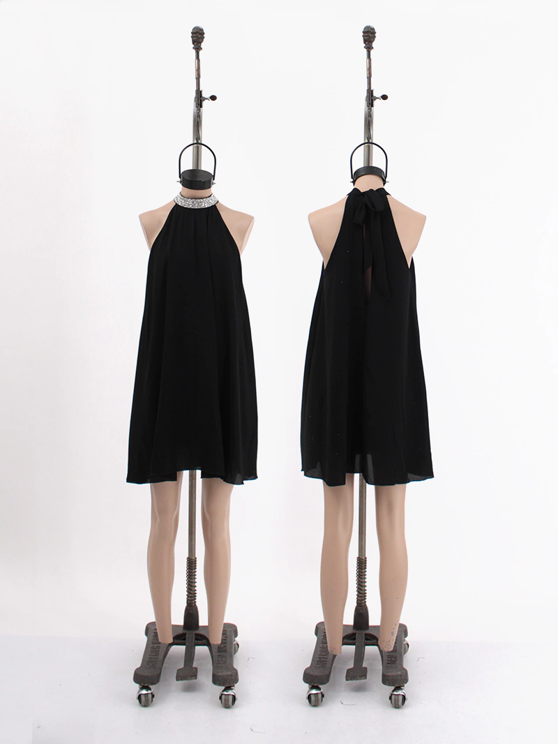 - Diseño: Vestido corto de corte femenino con collar choker de strass que realza tu look.