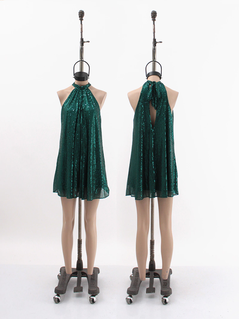 No dejes pasar la oportunidad de brillar en tu próxima salida. ¡El Vestido Corto Lentejuela Collar es el complemento perfecto para tu guardarropa!
