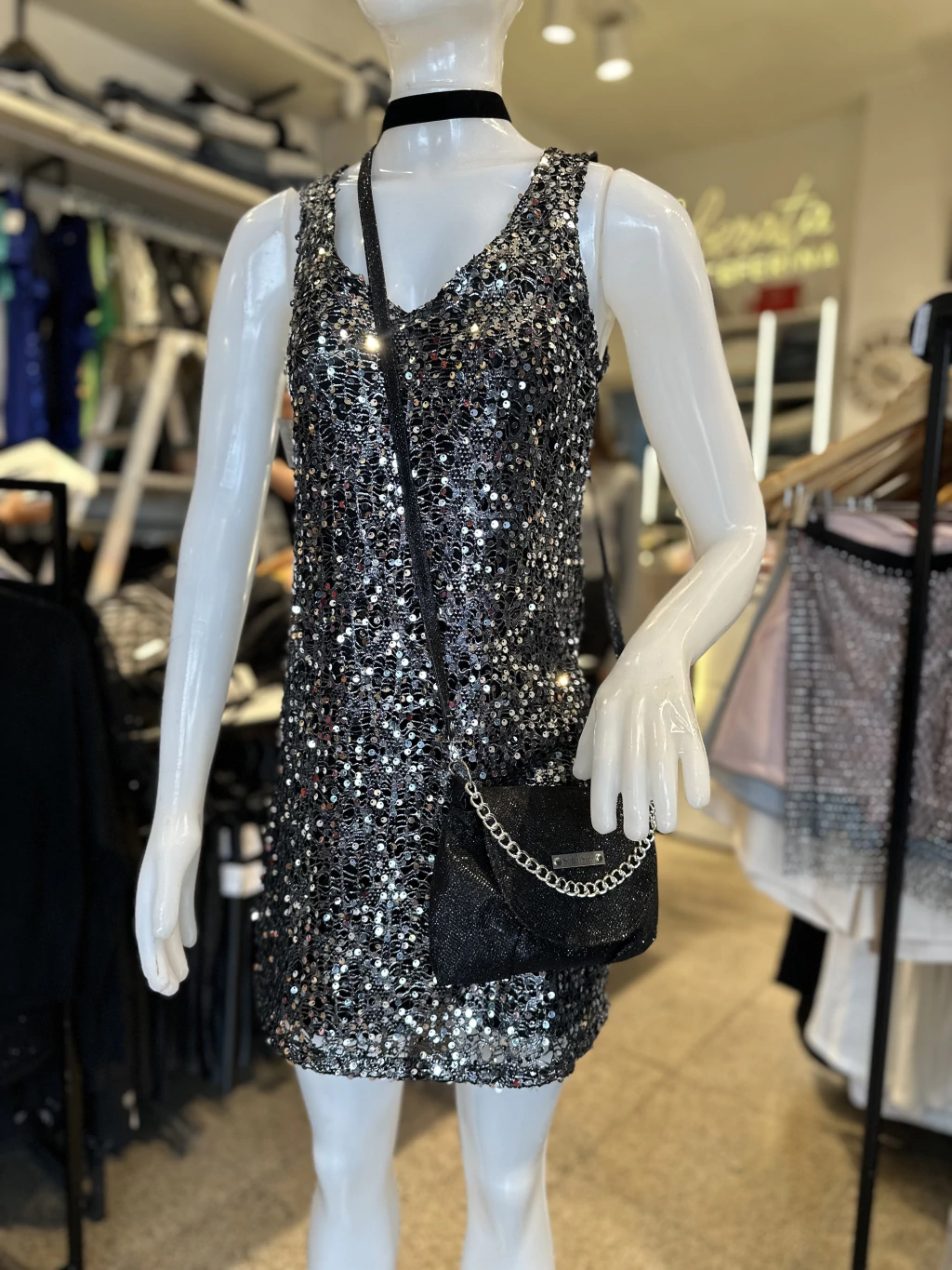 Vestido chocker lentejuelas