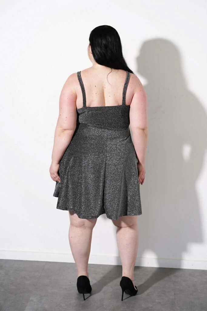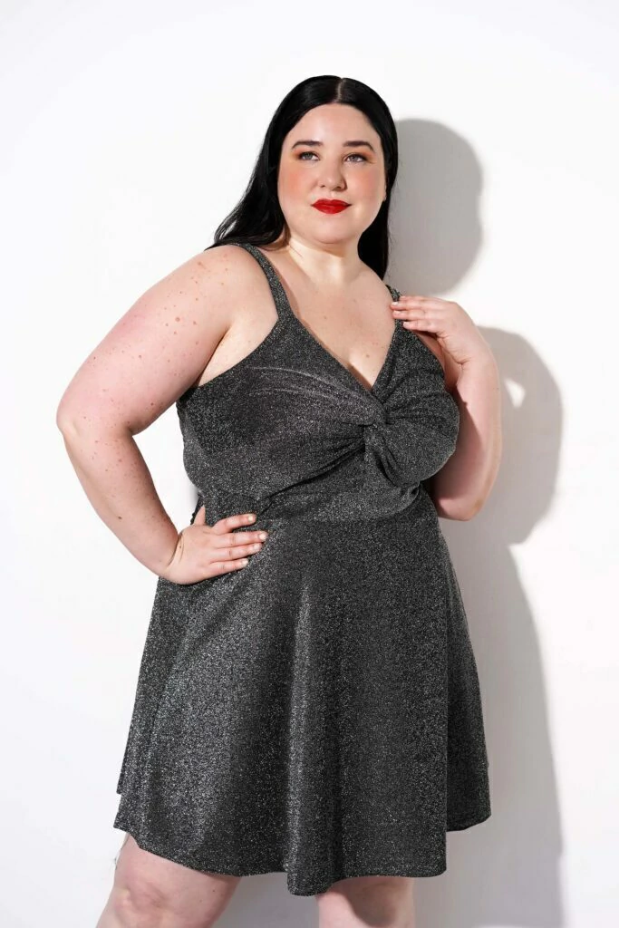 Este sofisticado vestido de lurex negro es la opción perfecta para brillar en cualquier ocasión. Con un diseño que se ajusta perfectamente al pecho, resalta tu figura de manera elegante y estilizada. La falda acampanada agrega movimiento y fluidez, creando una silueta femenina y sofisticada. El brillo sutil del lurex aporta un toque de glamour que no pasará desapercibido. Ideal para cenas formales, fiestas o cualquier evento donde quieras destacar con un look moderno y chic.